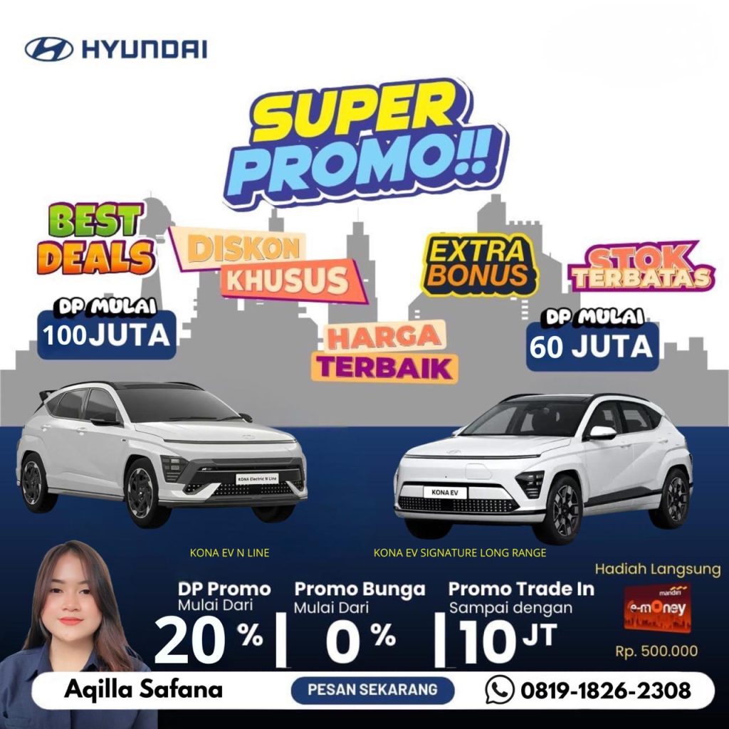 Promo Hyundai Kona Ev 2026 Jakarta – Percayakan pembelian mobil Hyundai impian anda disini, dan dapatkan Penawaran Promo Menarik, Paket Kredit Dp dan Angsuran Ringan serta Bonus dan Diskon Special khusus pemesanan mobil Hyundai Kona Ev di bulan ini.